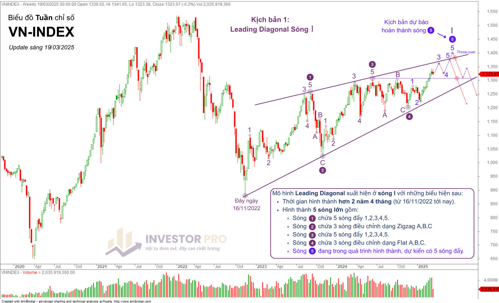Phân tích chi tiết các sóng trong mô hình Leading Diagonal hiện tại của Vn-Index:
