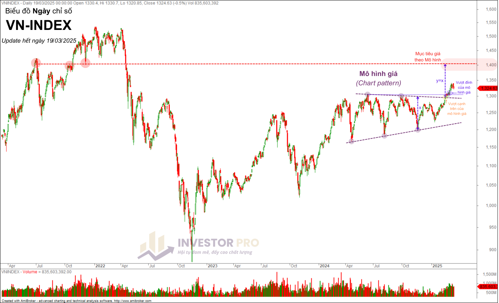Áp dụng phương pháp này, hiện tại thị trường vẫn còn dư địa tăng đáng kể với mục tiêu kỹ thuật dự kiến quanh vùng 1.400 +/- điểm, tương ứng mức tăng hơn 5% so với điểm số hiện tại.