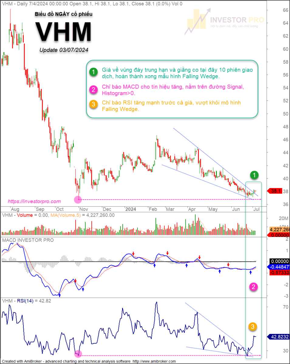 iNote 04/07/2024: Cổ phiếu VHM cho tín hiệu TẠO ĐÁY NGẮN HẠN