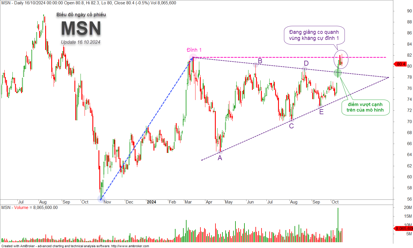 iStock 16/10/2024: Phân tích mô hình tam giác cân của cổ phiếu MSN