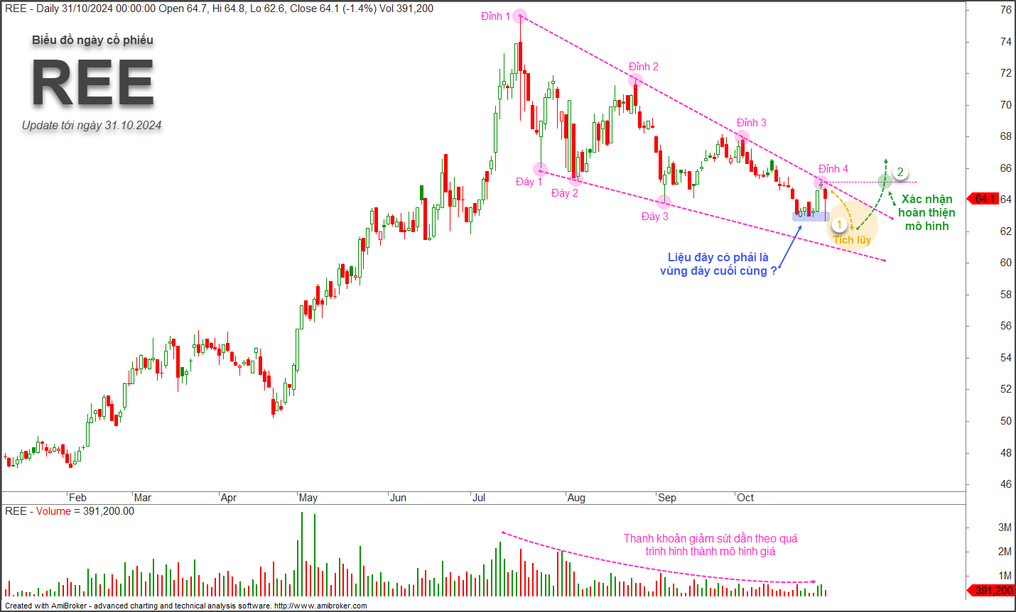 iStock 31/10/2024: Phân tích mô hình Cây nêm hướng xuống (Falling Wedge) của cổ phiếu REE